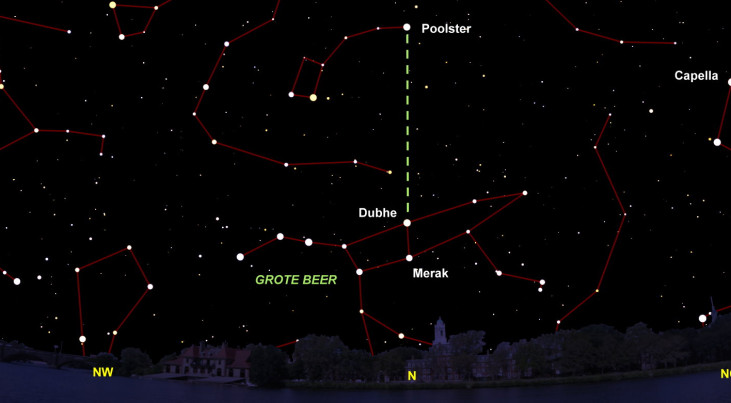 In het najaar is het beroemde sterrenbeeld Grote Beer (ook wel bekend als de Steelpan) rond middernacht zichtbaar boven de noordelijke horizon. De sterren Merak en Dubhe, aan de zijkant van de pan, wijzen je de weg naar de Poolster, die exact in het noorden staat.