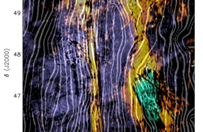 Maar wat zien ze dan? ‘Op basis van onze gegevens zien we een of andere draadvormige structuur, die uitgelijnd is met het magnetisch veld van de Melkweg en bestaat uit zowel stof als gassen, inclusief neutraal waterstof’, somt Zaroubi op. ‘De structuur moet zich ergens tussen ons zonnestelsel en de bron van de synchrotronstraling bevinden, vermoedelijk niet meer dan driehonderd lichtjaar bij ons vandaan. En gezien de vorm zou ik zeggen dat de structuur zich door het heelal beweegt.’