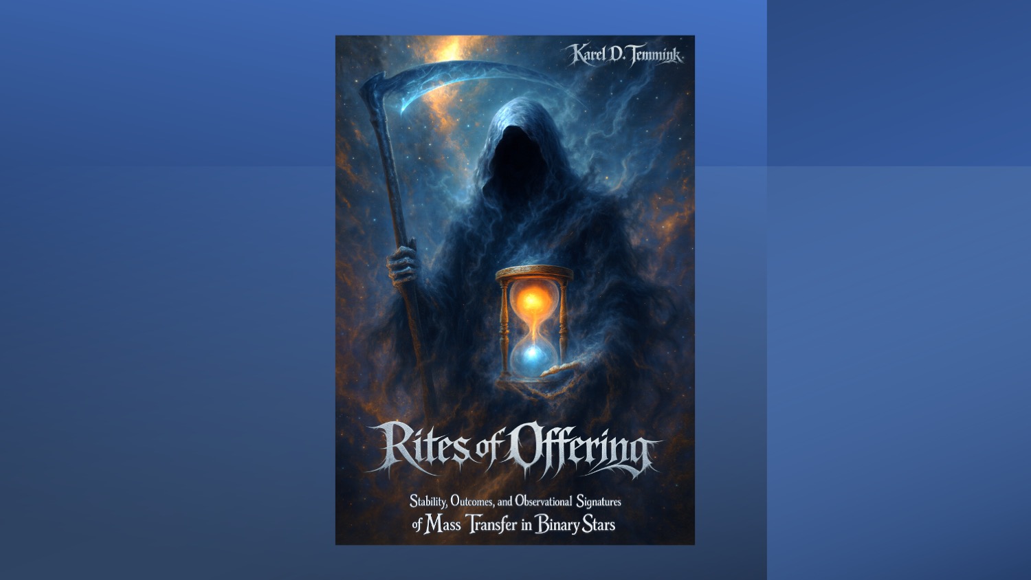 Op donderdag 11 juni om 12.30 uur verdedigt Karel Temmink zijn proefschrift aan de Radboud Universiteit. De titel luidt: 'Rites of Offering: Stability, Outcomes, and Observational Signatures of Mass Transfer in Binary Stars'. Zijn promotoren zijn Onno Pols en Stephen Justham (Max Planck Institute for Astrophysics).