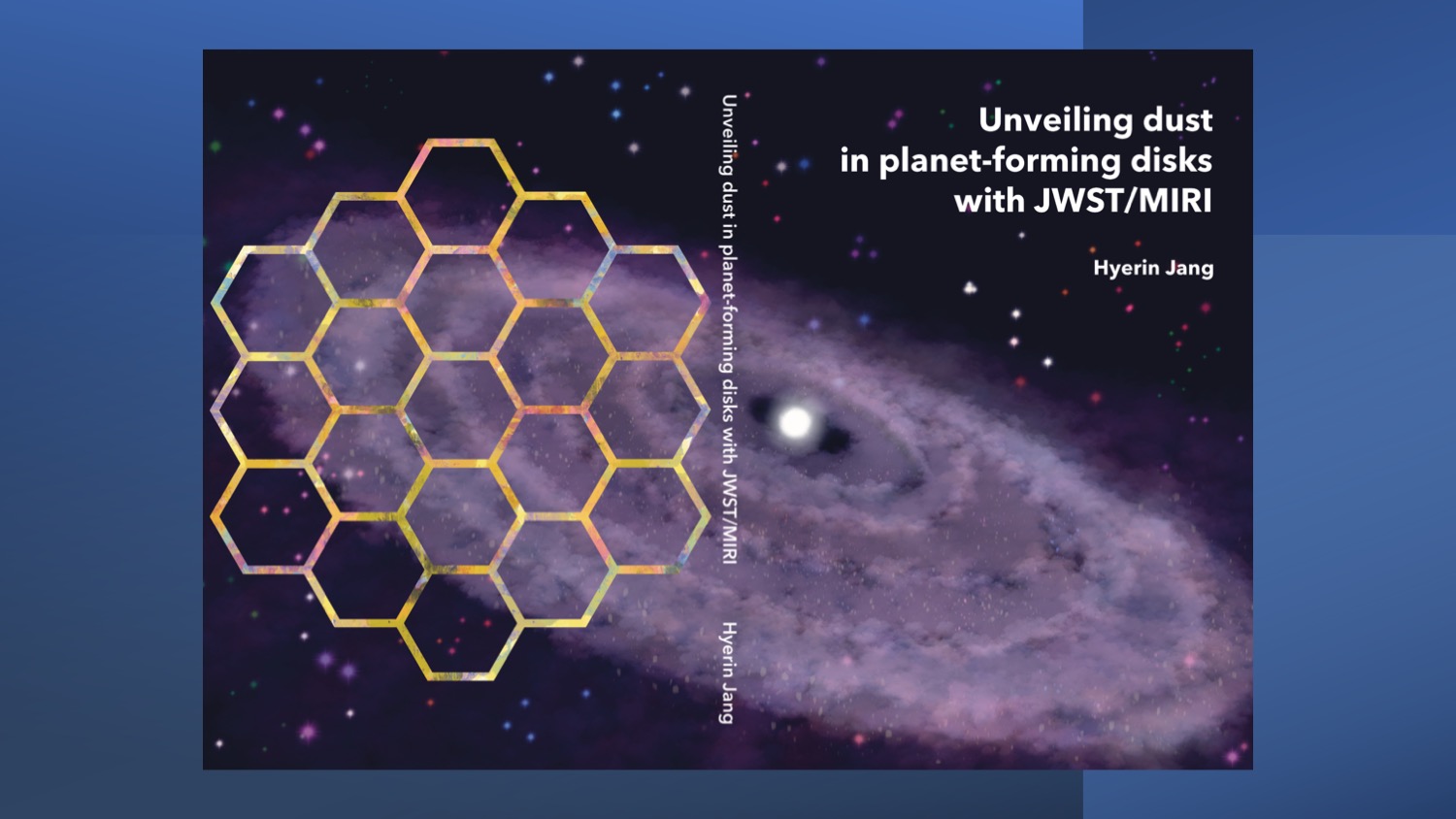 Op dinsdag 7 april om 16.30 uur verdedigt Hyerin Jang haar proefschrift aan de Radboud Universiteit. De titel luidt: 'Stof in planeetvormende schijven onthullen met JWST/MIRI'. Haar promotoren zijn Rens Waters en Inga Kamp (Rijksuniversiteit Groningen).